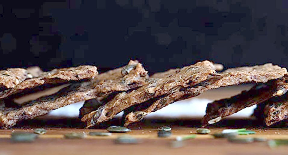 Stek med viftefunksjon på 140 C i 10 minutter på midterste rille. Ta brettet ut og del opp platen i passe knekkebrød-ruter med en pizzarulle og sett brettet inn igjen i ovnen. Stek videre i 60 minutter. Ta brettet ut og snu knekkebrødene. Stek videre i 30 min.